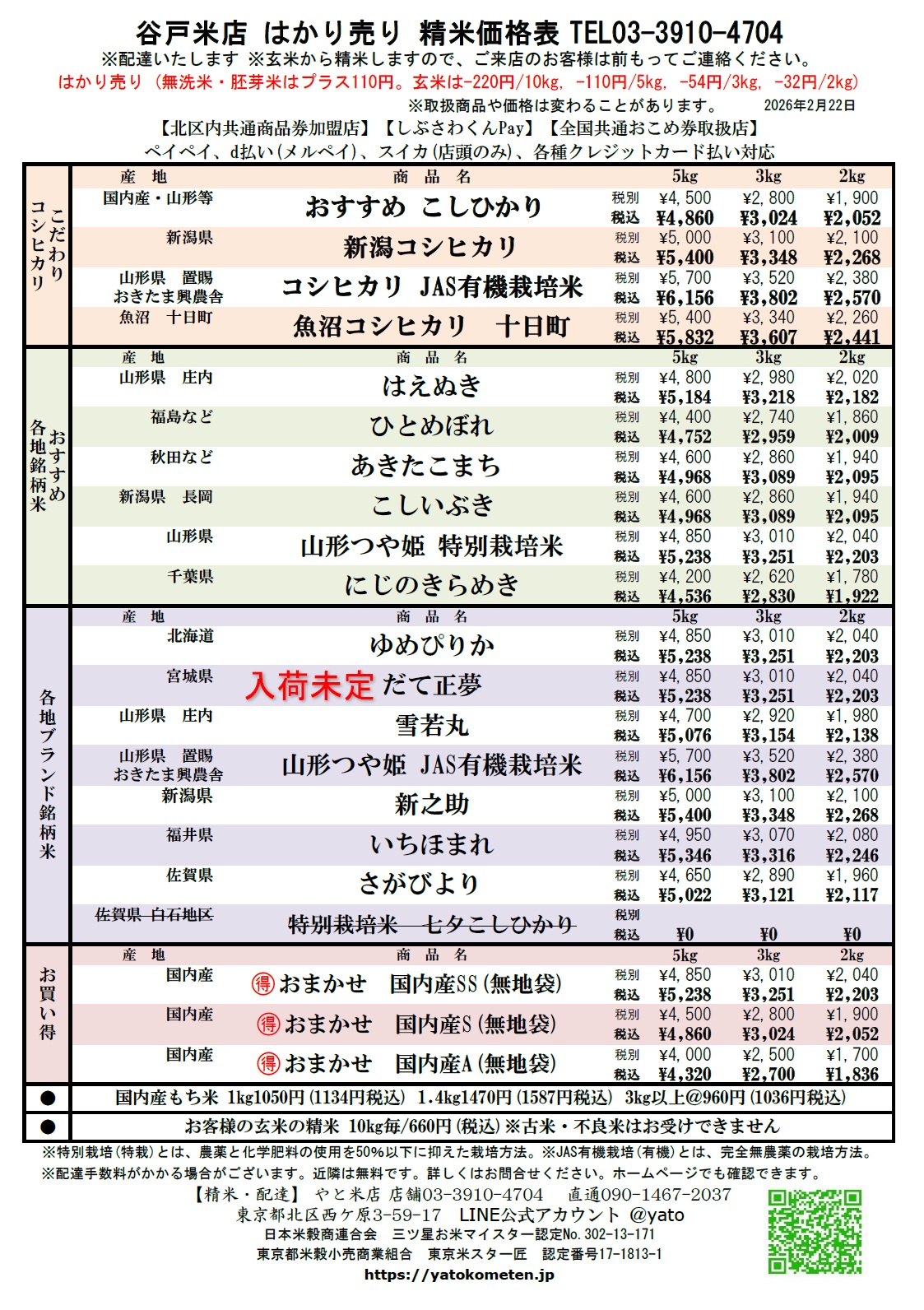 谷戸米店 LINE公式アカウントに登録